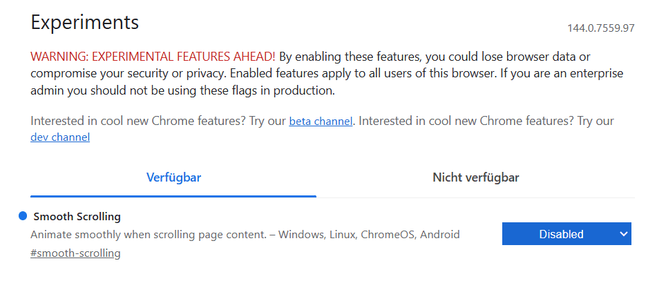 Suchen Sie in den chrome://flags (wie in Schritt 2) nach „Smooth Scrolling“.